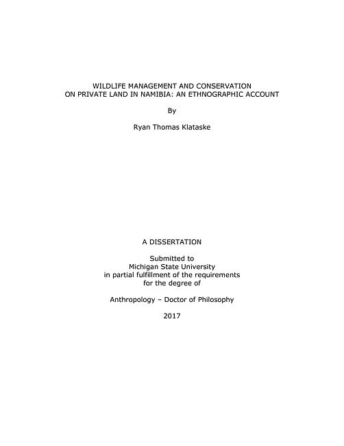 Wildlife Management and Conservation on Private Land in Namibia : an Ethnographic Account