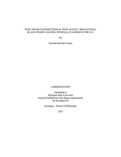 Post-Trump intersections & "post-racial" reflections : black women, racism, sexism, & classism in the U.S