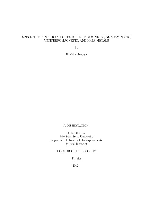 Spin dependent transport studies in magnetic, non-magnetic, antiferromagnetic, and half metals