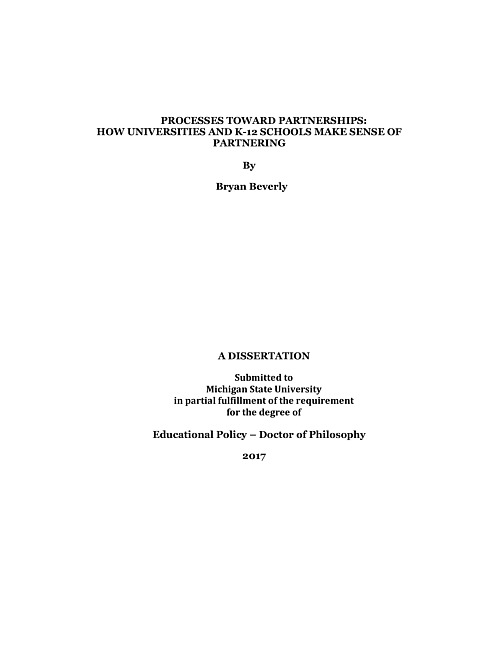 Processes toward partnerships : how universities and K-12 schools make sense of partnering