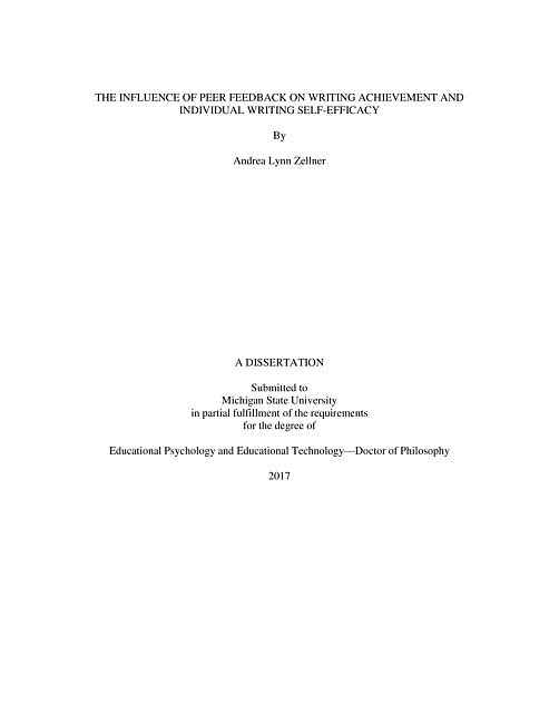 This study examined the influence of peer feedback and review on individual writing achievement and self-efficacy. Undergraduate first-year composition students engaged in normal instructional activities used the Eli Review program in order to conduct peer feedback and review sessions. Using the data collected from surveys and through the web-based peer review system Eli Review, the influence of giving and receiving writing feedback in peer review groups on both individual writing achievement and individual self-efficacy was modeled using a social-network analysis methodology. The findings showed that students did not improve over the course of the semester in achievement or self-efficacy. Additionally, social network analysis suggested a negative relationship between the quality of feedback received on writing achievement, while no relationship was found between the quality of feedback given on writing achievement and self-efficacy. The findings suggest that practitioners should focus on modeling the feedback cycle, specifically ways to incorporate feedback into the revision process. -- Abstract.