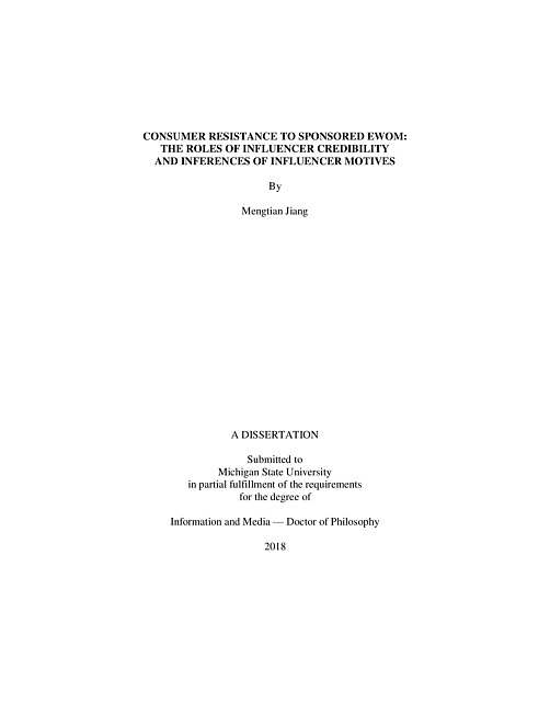 Consumer resistance to sponsored eWOM : the roles of influencer credibility and inferences of influencer motives