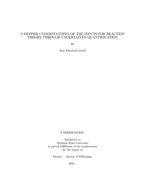 "Nuclear reactions are important for studying the properties of nuclei across the nuclear chart and in answering the biggest questions in nuclear science, ranging from the formation of the elements in the universe to societal applications. The exact description of nuclei in terms of a few degrees of freedom is not known, so models are developed to mimic the resulting phenomena. Because these prescriptions are, by definition, approximations, it is crucial to quantify the uncertainties that result from these approximations. These uncertainties arise not only from the simplifications that are made to the solutions of the scattering problem and degrees of freedom removed from the model space, but also from the parameterization of the effective potentials. Although it is important to rigorously quantify each uncertainty, we take the first step by systematically studying the effect of parametric uncertainties arising from fitting optical model parameters to elastic-scattering data. To do this, we use simple reaction models, the distorted-wave Born approximation (DWBA) and the adiabatic wave approximation (ADWA), for computationally inexpensive calculations. Two methods of parametric uncertainty quantification were explored in this work, a frequentist approach and a Bayesian approach. In the frequentist study, chi 2 minimization was used to constrain optical model parameters in the incoming scattering channel, using neutron and deuteron elastic-scattering data. Then 95% confidence bands were constructed around the best-fit calculation for elastic scattering and were propagated in order to compute 95% confidence bands for predicted (d,p) and (n,n0 ) cross sections using DWBA. A correlated chi 2 fitting function was introduced to take into account the angular correlations within the elastic-scattering model. Using this correlated chi 2 function led to broader confidence bands and more physical descriptions of the angular distributions. For the Bayesian study, a wide Gaussian prior was used in conjunction with neutron, proton, and deuteron elastic-scattering data to construct posterior distributions through a Markov Chain Monte Carlo. From the posterior distributions, 95% confidence intervals were constructed for the elastic-scattering cross sections and then propagated to predict 95% confidence intervals for (d,p) and (d,n) reactions using either ADWA or DWBA. In this way, the parametric uncertainties from ADWA and DWBA could be directly compared, and ADWA was found to have smaller uncertainties. The effect of artificially reducing the experimental errors on elastic-scattering data was studied, and it was found that the uncertainties in the transfer cross section decreased but not by the same percent that the experimental errors were reduced. Overall, the uncertainties on the predicted cross sections due to fitting optical model parameters to elastic-scattering data ranged from 20 - 120%, significantly larger than the 10-30% uncertainties that are assumed to be introduced by these fits. Uncertainties beyond those introduced by fitting to data must also be included, such as those introduced by the few-body approximations. In addition, the propagation of uncertainties has to be reliable. A full description of theoretical uncertainties is vital for predictions, especially as we move toward the edge of the nuclear landscape."--Pages ii-iii.
