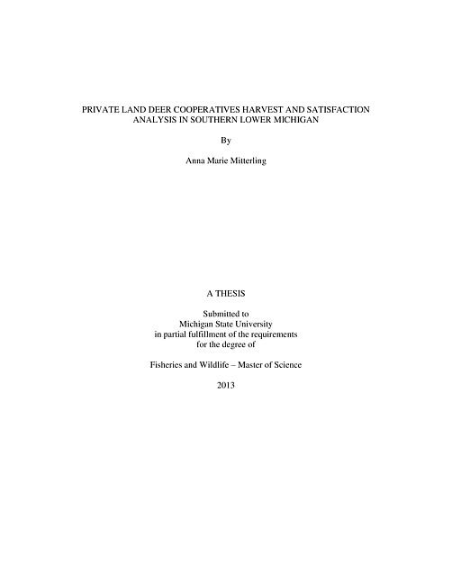 Private land deer cooperatives harvest and satisfaction analysis in Southern Lower Michigan