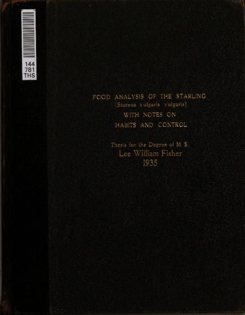 Food analysis of the starling (Sturnus vulgaris vulgaris) with notes on habits and control