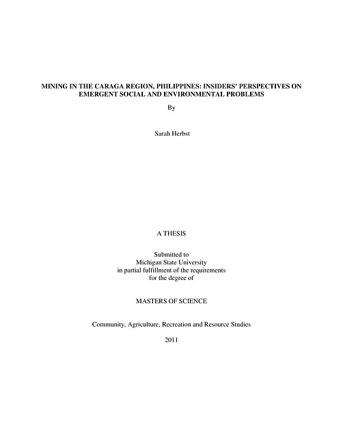 Mining in the Caraga Region, Philippines : insiders' perspectives on emergent social and environmental problems