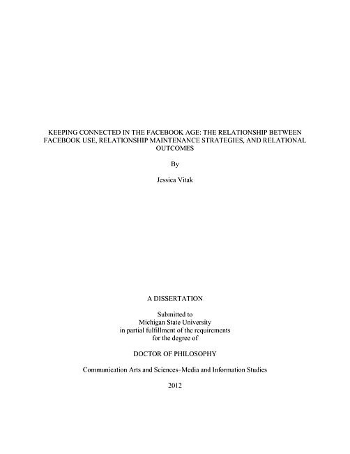 Keeping connected in the Facebook age : the relationship between Facebook use, relationship maintenance strategies, and relational outcomes
