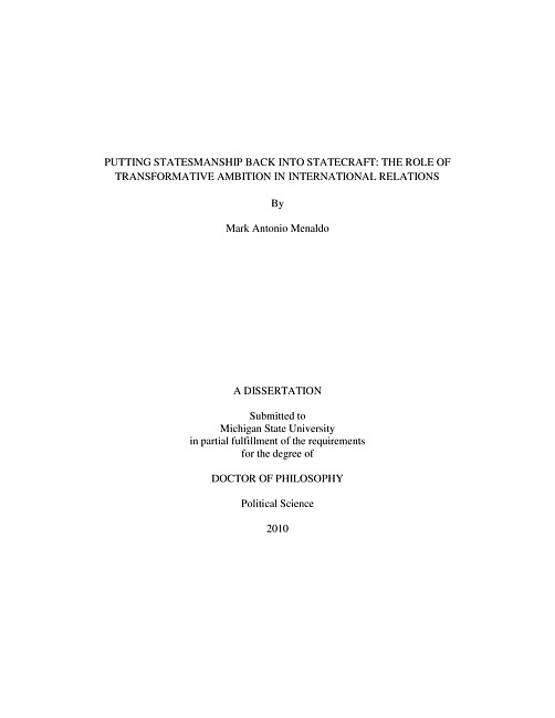 Putting statesmanship back into statecraft : the role of transformative ambition in international relations