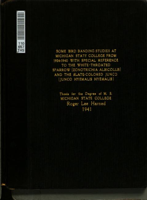 Some bird banding studies at Michigan State college from 1924-1940 with special reference to the white-throated sparrow (Zonatrichia albicollis) & the slate-colored junco (Junco hyemalis hyemalis)