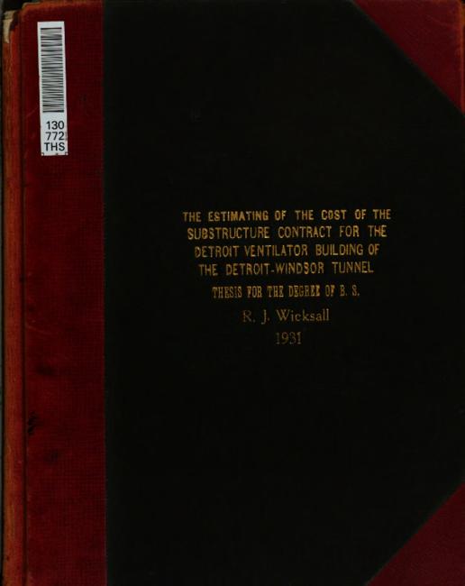 The estimating of the cost of the substructure contract for the Detroit ventilator building of the Detroit-Windsor tunnel