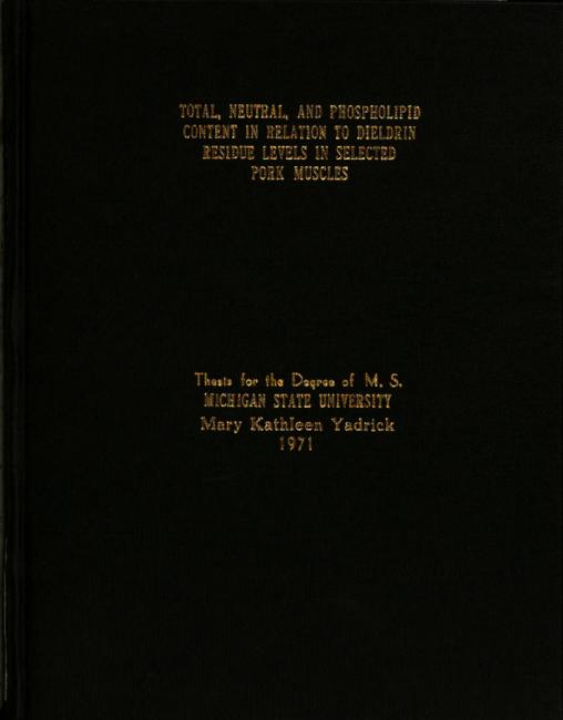 Total, neutral, and phospholipid content in relation to dieldrin residue levels in selected pork muscles