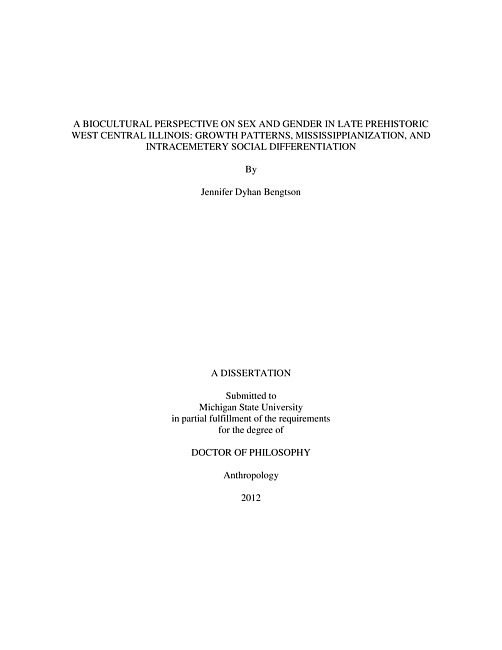 A biocultural perspective on sex and gender in late prehistoric West Central Illinois : growth patterns, Mississippianization, and intracemetery social differentiation