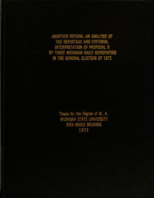 Abortion reform : an analysis of the reportage and editorial interpretation of Proposal B by three Michigan daily newspapers in the general election of 1972