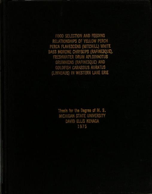 Food selection and feeding relationships of yellow perch Perca flavescens (Mitchill), white bass Morone chrysops (Rafinesque), freshwater drum Aplodinotus grunniens (Rafinesque) and goldfish Carassius auratus (Linneaus) in western Lake Erie