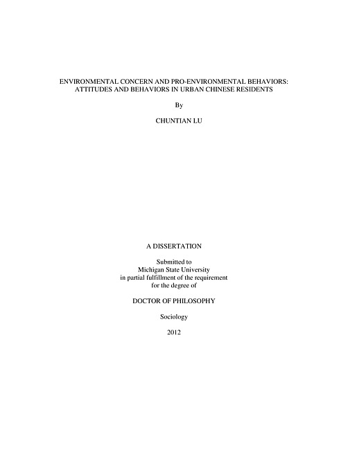 Environmental concern and pro-environmental behaviors : attitudes and behaviors in urban Chinese residents