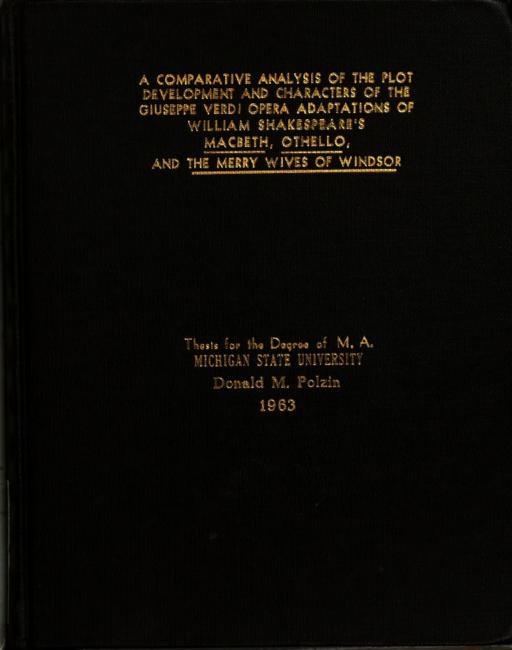 A comparative analysis of the plot development and characters of the Giuseppe Verdi opera adaptations of William Shakespeare's Macbeth, Othello, and The merry wives of Windsor