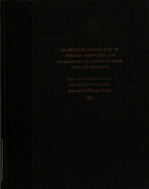 The effects of various levels of nitrogen, phosphorus, and potassium on the growth of sugar beets and table beets