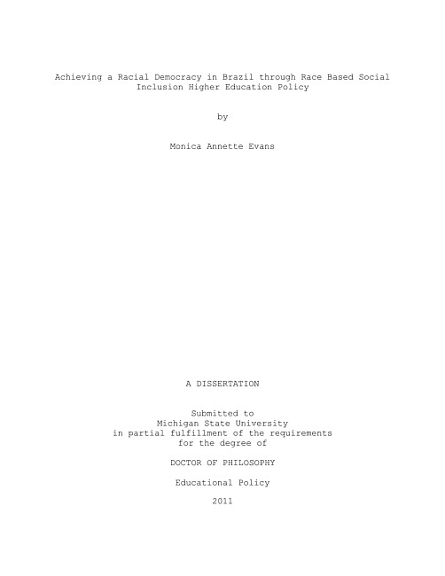Achieving a racial democracy in Brazil through race based social inclusion higher education policy