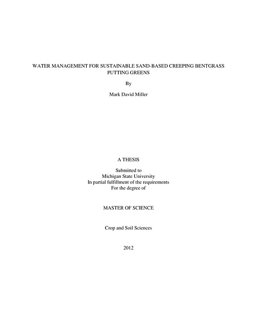 Water management for sustainable sand-based creeping bentgrass putting greens
