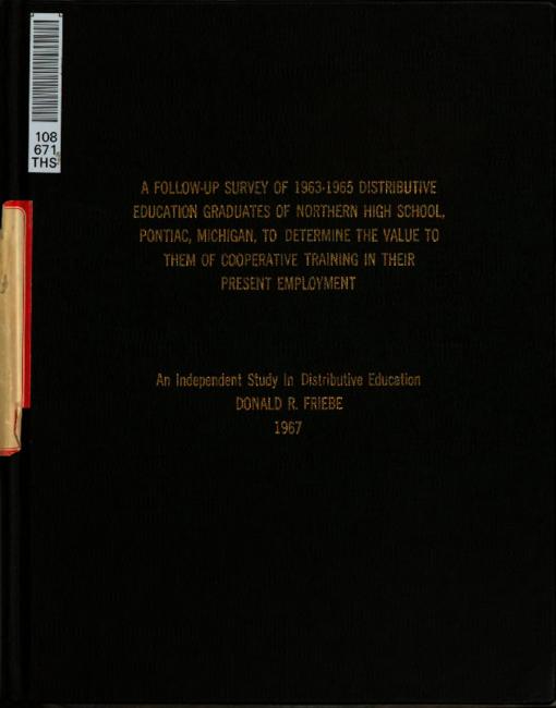 A follow-up survey of 1963-1965 distributive education graduates of Northern High School, Pontiac, Michigan, to determine the value to them of cooperative training in their present employment