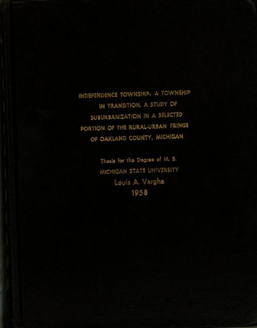 Independence Township : a township in transition, a study of suburbanization in a selected portion of the rural-urban fringe of Oakland County, Michigan