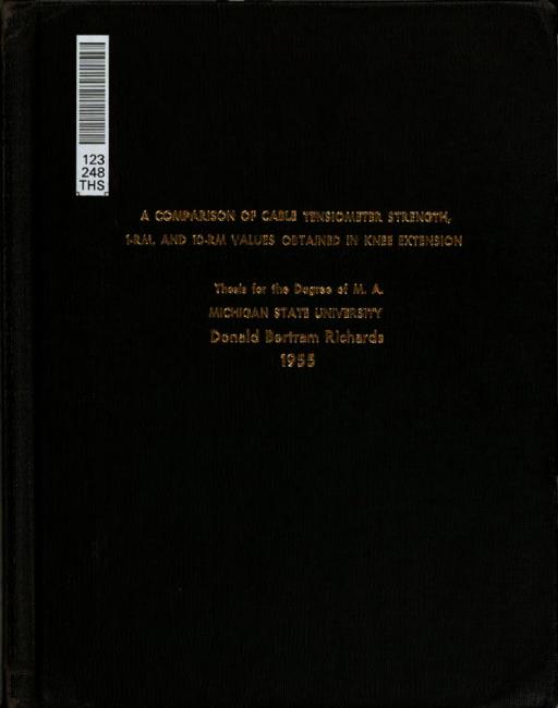 A comparison of cable tensiometer strength, 1-RM, and 10-RM values, obtained in knee extension