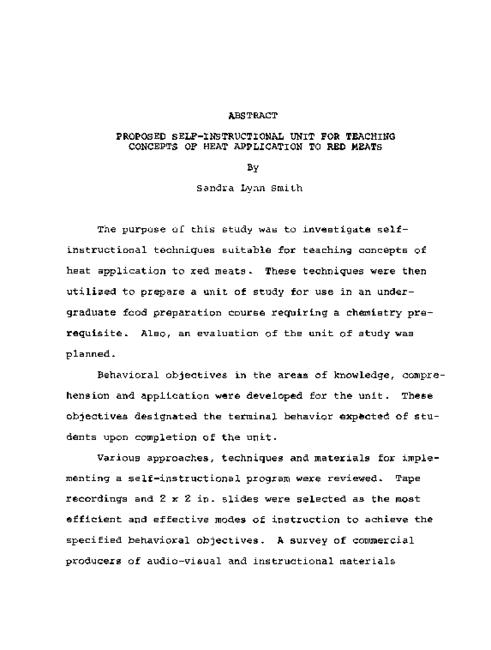 Proposed self-instructional unit for teaching concepts of heat application to red meats