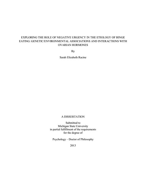 Exploring the role of negative urgency in the etiology of binge eating : genetic/environmental associations and interactions with ovarian hormones