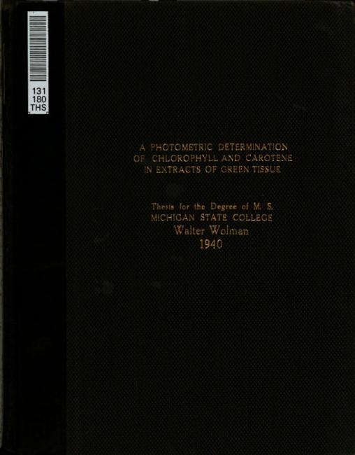 A photometric determination of chlorophyll & carotene in extracts of green tissue