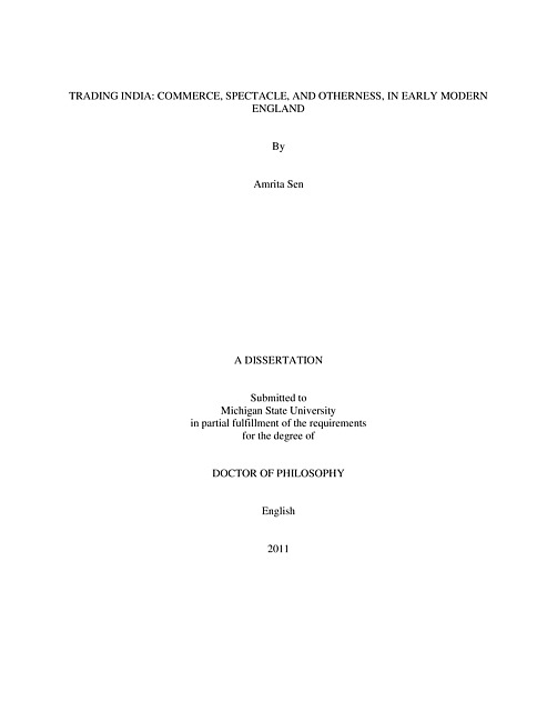ABSTRACTBy Amrita SenSpices - pepper, nutmegs, cinnamon and mace drove England's early quest for the East Indies. My dissertation charts the emergent stages of England's trade with the East Indies, exploring divergent English responses to both foreign objects and racialized bodies. Even before the establishment of the East India Company on December 31, 1600, `India' circulated as a series of images, myths and commodities. While drawing on these older depictions of `India' and the East Indies, my project takes into account the new ways in which early modern England interacted with eastern bodies after London merchants finally gained direct access to "the islands of spicerie." As such my research has much in common with the recent emphasis on a `global renaissance,' situating England at the cross roads of transnational commerce and proto-colonialism. I argue that not just far flung tropical islands, but London itself needs to be recognized as a `contact zone' (citing Mary Louise Pratt) where actual East Indians roamed the streets and Englishmen consumed eastern objects. In turn, Indian subjects and commodities found their way into court masques, civic spectacles and the commercial stage, briefly transforming Cheapside into a pepper plantation for the Grocer's guild, or Henrietta Maria into an Indian queen in Whitehall. Nonetheless, trade expansion triggered divergent reactions during the sixteenth and seventeenth centuries, leading to public disavowals or championing of the East Indies trade. Structured around civic pageantry, court entertainments and the public stage, my chapters examine a mutually constitutive relationship between mercantile forces and cultural productions geared to varied and distinct publics. Specifically, I focus on three particular publics: mercantile, courtly and playhouse gatherings. My opening chapter, "Imagining India: Discourse of the East Indies," reads the domestic spat between Titania and Oberon over the Indian Boy in William Shakespeare's A Midsummer Night's Dream alongside Mandeville's Travels, early cartography and the arguments against the East Indies trade set forth by seventeenth century pamphleteers like Robert Kayll and Edward Misselden. I argue that during the early modern period, older stereotypes of India as a land of aberrations transformed from a discourse on physical or moral monstrosity to that of economic deviancy. In my second chapter "Blackness, Spices and Civic Spectacle: Importing the East Indies in London's Lord Mayor's shows," I turn to mercantile publics and the Grocers Guild. I am particularly interested in how questions of indigenous labor, religious conversion and spice trade play out in Thomas Middleton's The Tryumphs of Honor and Industry (1617) and The Triumphs of Honor and Vertue (1622). A racially ambiguous Indian queen and her troop of singing Brachmani priests form the subject of my third chapter, "Playing an Indian Queen: Neoplatonism, Ethnography, and The Temple of Love." Focusing more on `becoming' Indian, this chapter analyzes William Davenant's masque for Henrietta Maria alongside the thriving new market of curiosities. My final chapter "`And make them perfect Indies': Alchemy, transmutation and the East India Company," examines the conflation of roguery and East Indies trade in Jonson, charting how the fabulous riches of `India' transform into a metaphor for an elaborate hoax. These concerns have much in common with popular perceptions regarding the `alchemical' quality of England's balance of the trade, and the shortage of bullion, seen to be the direct result of an over-consumption of eastern goods. As such this chapter tests the limits of `becoming' Indian, and the appetite for consuming spices, pearls and calicoes.