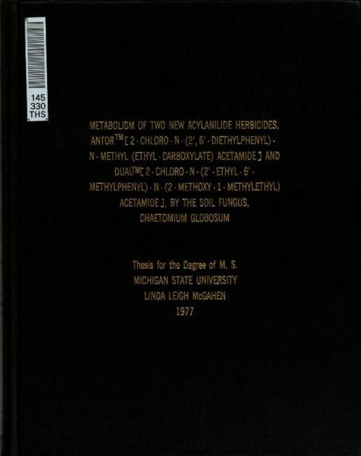 Metabolism of two new acylanilide herbicides, antor TM [2-chloro-N̲-(2',6'-diethylphenyl)-N̲-Methyl(ethylcarboxylate)acetamide] and dual TM [2-chloro-N̲-(2'-ethyl-6'-methylphenyl)-N̲-(2-methoxy-1-methylethyl)acetamide], by the soil fungus, Chaetomium g...