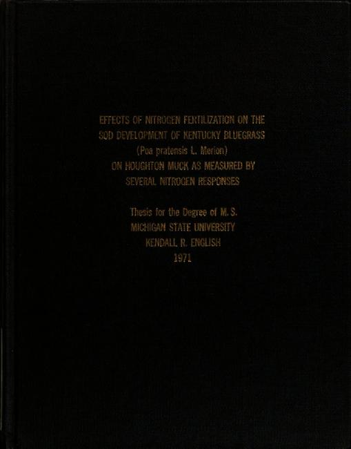 Effects of nitrogen fertilization on the sod development of Kentucky bluegrass (Poa pratensis L. Merion) on Houghton muck as measured by several nitrogen responses
