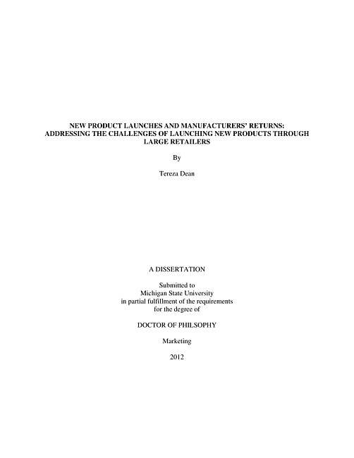 Manufacturers are increasingly turning to innovation and the development of new products in the hopes of generating increased sales and profits (Abetti 2000, Chandy and Tellis 2000). However, the value that innovation efforts generate for firms is limited when new products are launched through large retailers, because manufacturers must share a portion of the value with these retailers. This is a challenge, since manufacturers and retailers are rivals for value extraction. While the growing power of retailers creates challenges for manufacturers, research on new product launches is currently limited. It has not yet addressed distribution-related issues and the difficulties that manufacturers face when dealing with large retailers. This two-essay dissertation therefore investigates some of the challenges that manufacturers face when launching new products through large retailers.