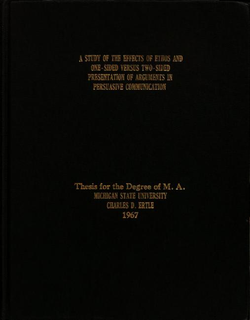 A study of the effects of ethos and one-sided versus two-sided presentation of arguments in persuasive communication