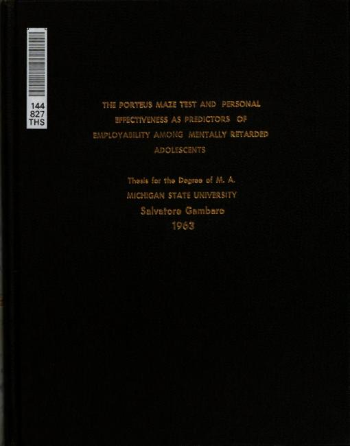 The Porteus maze test and personal effectiveness as predictors of employability among mentally retarded adolescents