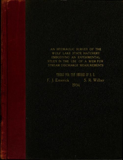 An hydraulic survey of the Wolf Lake state hatchery embodying an experimental study in the use of a weir for stream discharge measurements