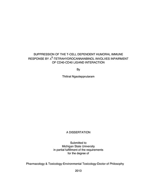 Suppression of the T-cell dependent humoral immune response by Delta(9)-tetrahydrocannanbinol involves inpairment of CD40-CD40 ligand interaction