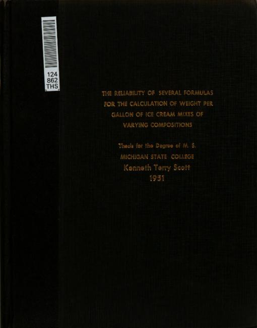 The reliability of several formulas for the calculation of weight per gallon of ice cream mixes of varying compositions