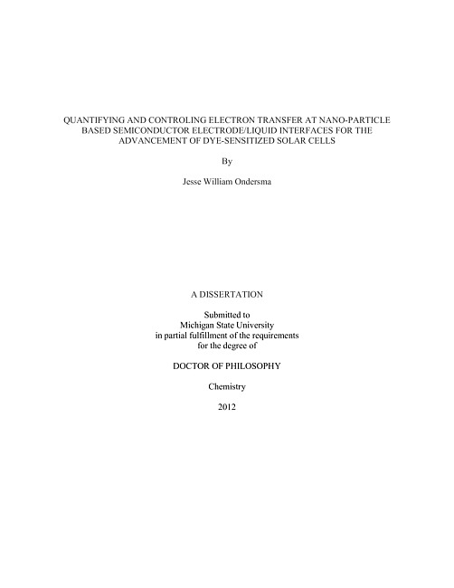 Quantifying and controling electron transfer at nano-particle based semiconductor electrode/liquid interfaces for the advancement of dye-sensitized solar cells