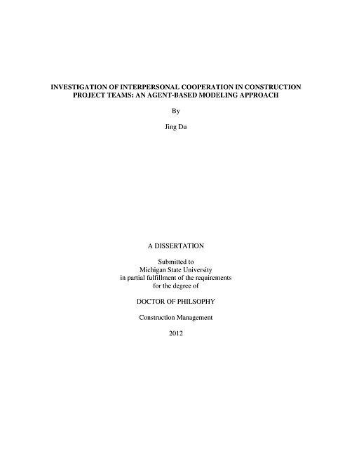 Investigation of interpersonal cooperation in construction project teams : an agent-based modeling approach