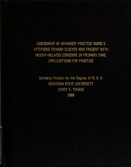 Assessment of advanced practice nurse's [sic] attitudes toward clients who present with weight-related concerns in primary care : implications for practice