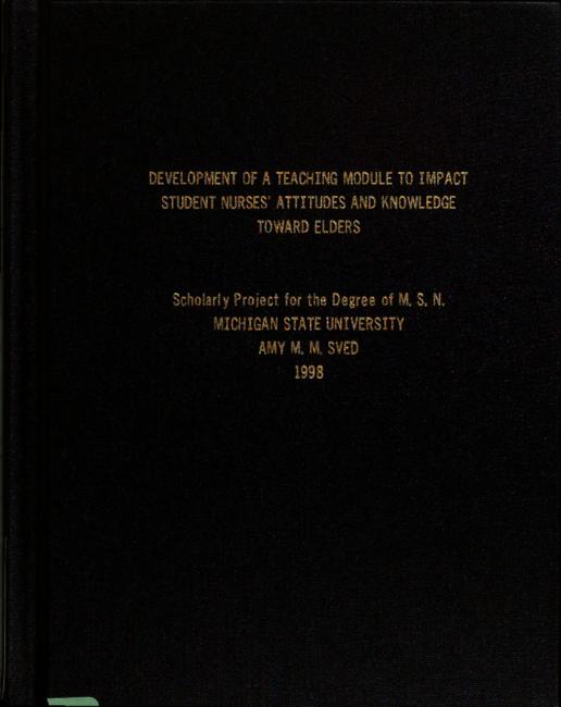 Development of a teaching module to impact student nurses' attitudes and knowledge toward elders : by Amy M.M. Sved