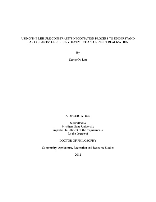 Using the leisure constraints negotiation process to understand participants' leisure involvement and benefit realization