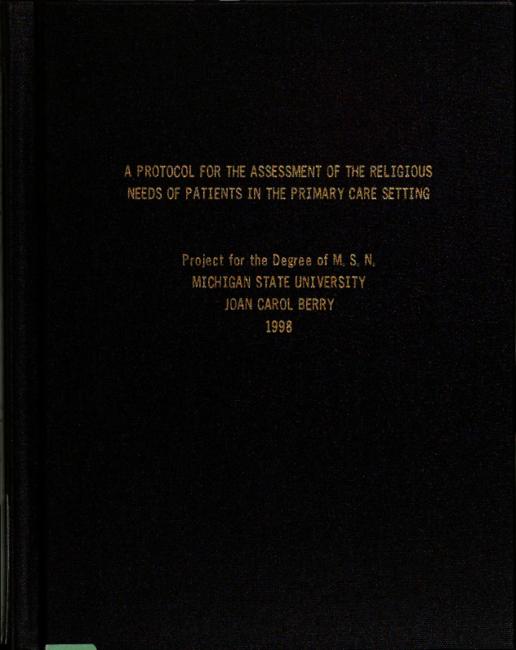 A protocol for the assessment of the religious needs of patients in the primary care setting