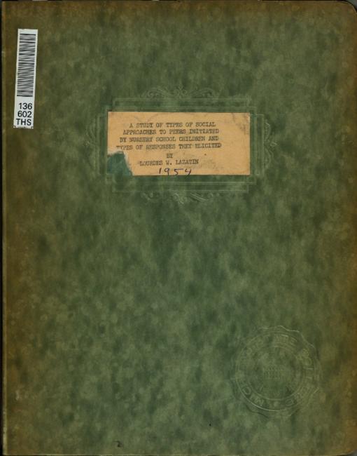 A study of types of social approaches to peers initiated by nursery school children and types of responses they elicited