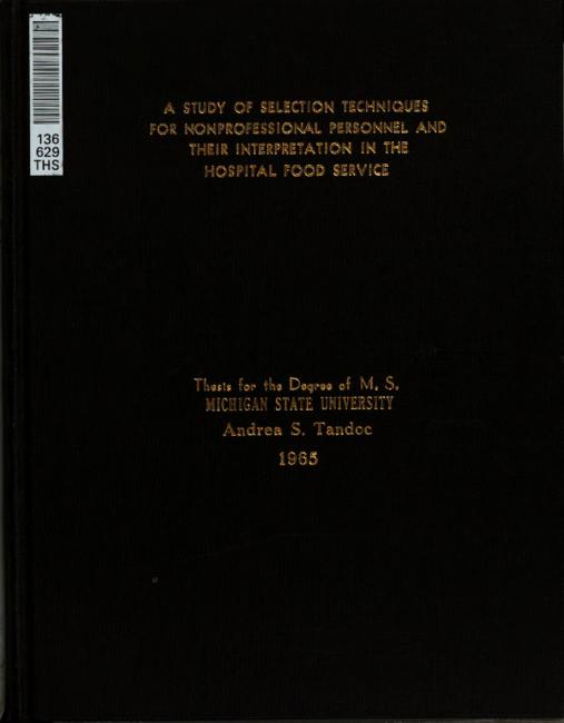 A study of selection techniques for nonprofessional personnel and their interpretation in the hospital food service