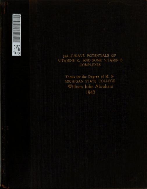 Half-wave potentials of vitamins K, and some vitamin B complexes