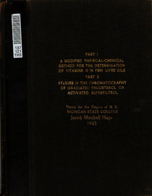 Part I: A modified physical-chemical method for the determination of vitamins D in fish liver oils ; Part II: Studies in the chromatography of irradiated ergosterol on activated superfiltrol