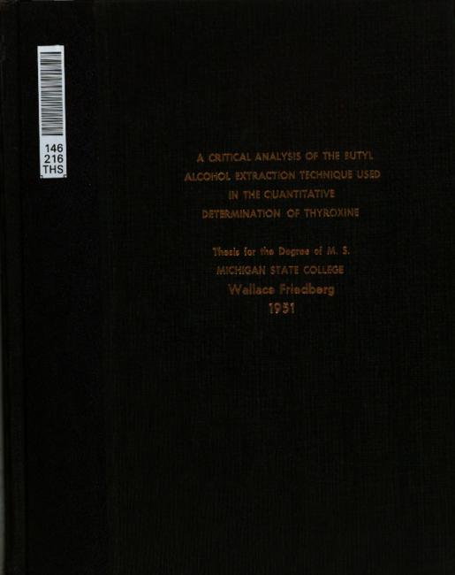 A critical analysis of the butyl alcohol extraction technique used in the quantitative determination of thyroxine