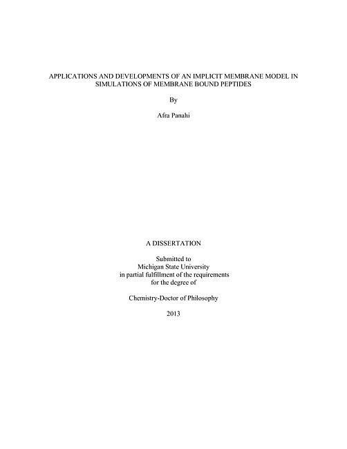 Applications and developments of an implicit membrane model in simulations of membrane bound peptides